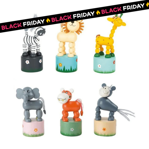 Che divertimento! Premendo il loro piedistallo, questi divertenti animaletti in legno prenderanno vita! 🦒 Inizia il Safari: Animaletti a Pressione ...