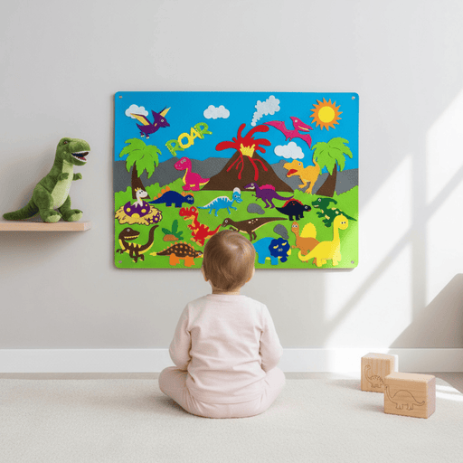 Chi c’è oggi nella fattoria? 🐮 E cosa succede nel mondo dei dinosauri? 🦕 Con questo maxi pannello in feltro, il tuo bambino potrà dare vita ogni gi...