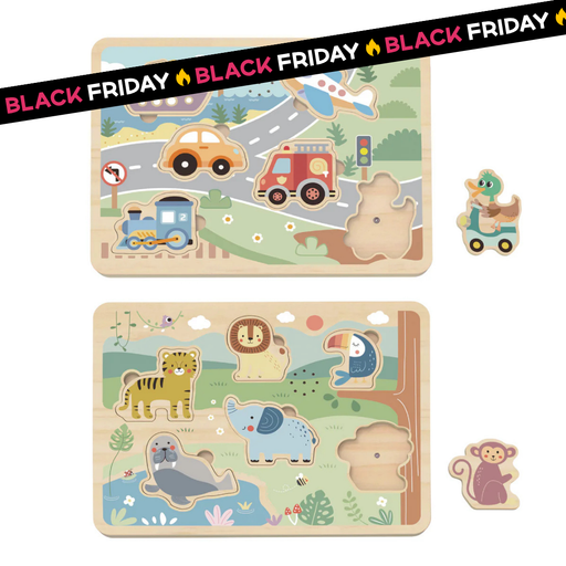 🧩 Scopri, Tocca, Impara! Perfetto per le piccole mani curiose, il Chunky Puzzle in Legno trasforma il gioco in una fantastica esperienza sensoriale...