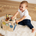Von bunten Holznummern über bewegliche Zahnräder bis hin zu Schaltern, Scharnieren und bruchsicheren Spiegeln, bietet jede Seite des Würfels eine andere Aktivität. Die Kinder können Konzepte wie Ursache-Wirkung, Hand-Augen-Koordination und Formen erkennen, während sie Spaß haben.