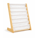 Dank ihrer für die Kleinsten durchdachten Höhe ermöglicht die vertikale Montessori-Bibliothek den Kindern, ihre Bücher ohne die Hilfe eines Erwachsenen auszuwählen und zurückzustellen. Dies fördert die Entwicklung der feinen motorischen Fähigkeiten und unterstützt ein Gefühl von Verantwortung und Organisation. Die Kombination aus robustem Holz und weißem Stoff schafft eine einladende und ordentliche Umgebung, die perfekt ist, um das Interesse am Lesen zu wecken.