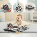 Un set essenziale per accompagnare i neonati nei primi mesi di scoperta. Grazie al design in bianco e nero, il bundle stimola la vista fin dai primi giorni e coinvolge anche tatto e udito attraverso texture diverse e suoni delicati.