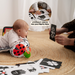 Durante i primi 3 mesi di vita, il neonato inizia ad esplorare il mondo attraverso la vista. Le carte a contrasto in bianco e nero sono un'ottima introduzione visiva per il bambino, poiché questi colori sono più facili da distinguere e catturano l'attenzione dei neonati. Questi pattern semplici contribuiscono a migliorare la distanza visiva e a stimolare lo sviluppo precoce del cervello, favorendo una connessione neurale sana. È un'opportunità preziosa per il genitore di condividere momenti di osservazione tranquilla con il neonato, fornendo stimoli visivi appropriati che supportano la sua crescita e sviluppo.